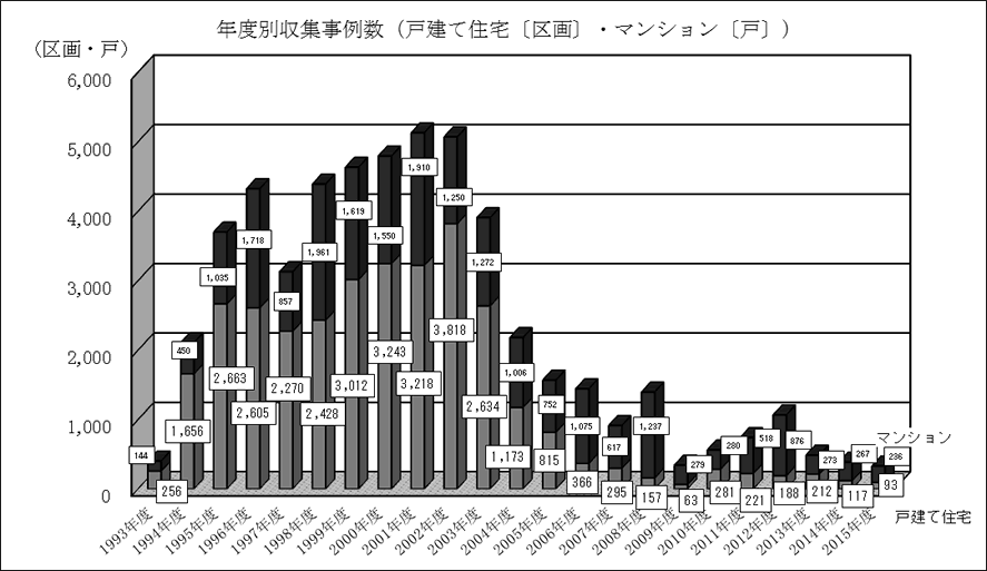 戸建て住宅、マンションのそれぞれに関し、収集データを元に、以下のa.~k.の項目についてグラフ・表にまとめて掲載している。