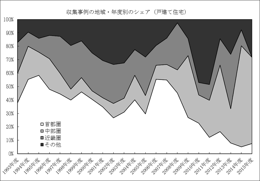 2015年度における戸建て住宅の収集事例数は、51件93区画である。