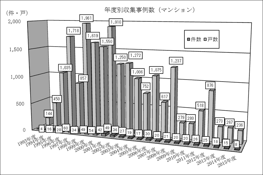 マンションの収集事例数は8件236戸である。前年度は15件267戸であるので、1件あたり戸数が多くなっており大規模なマンションが増えている。